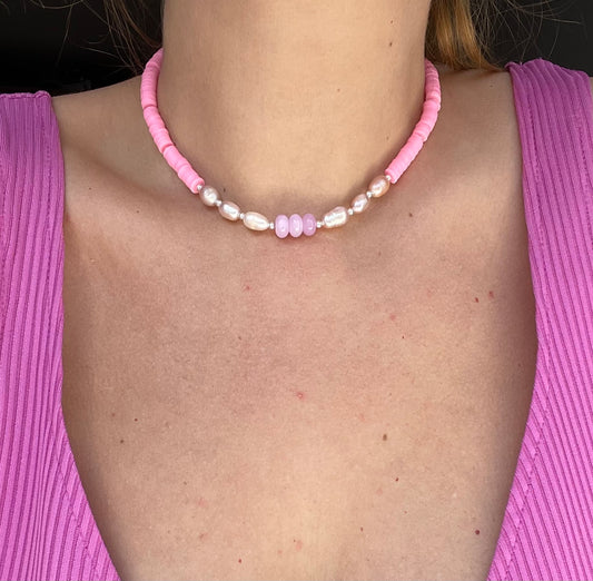 Elegant pink Barbie beaded necklace