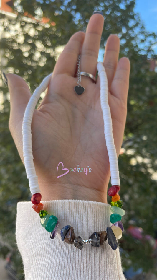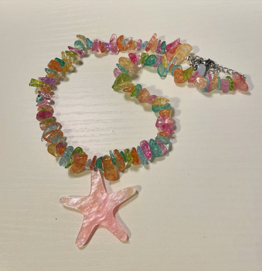 Natural stone summer statement necklace with a star