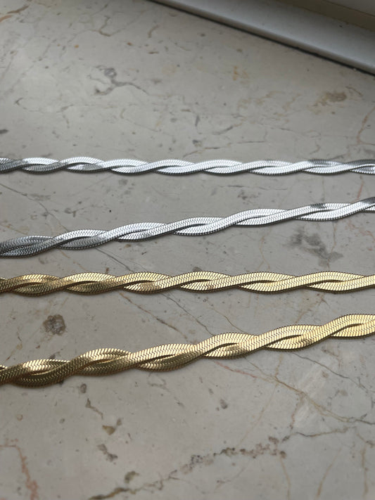 18K gold-plated twisted snake necklace gold silver