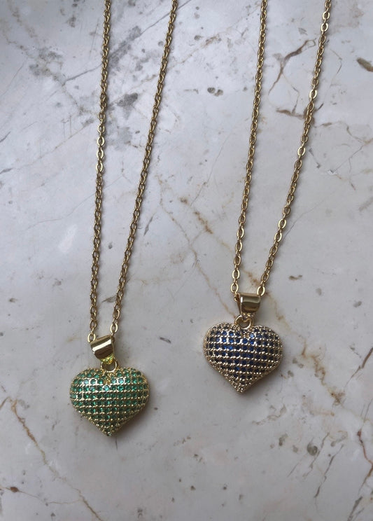 Elegant delicate gold-plated stainless steel necklace with a colorful heart charm
