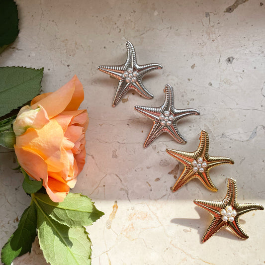 Chunky starfish stainless steel earings with pearls