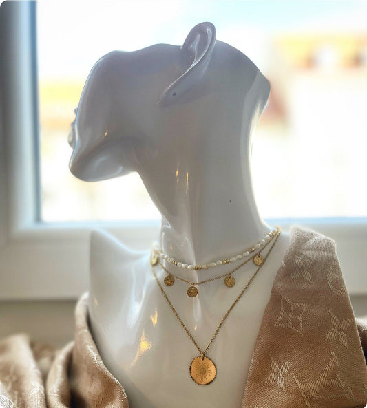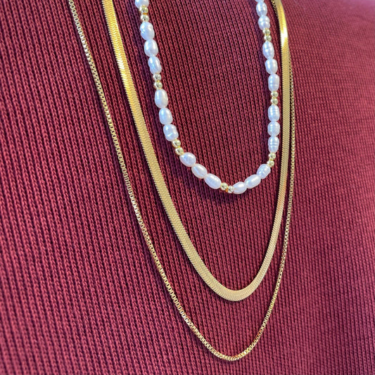 Classy freshwater pearls and gold-plated beads necklace with a stainless steel necklace set