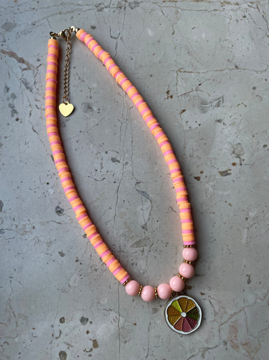 Colorful citrus beaded necklace with a charm