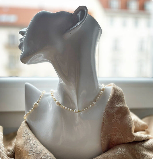 Pastel minimalist elegant necklace beaded with artificial pearls